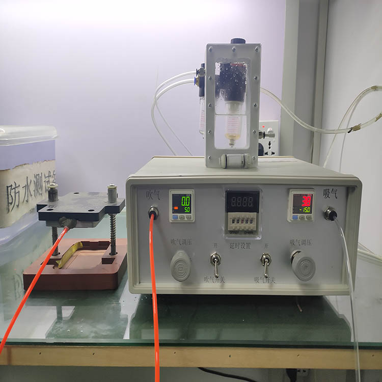 現在廠家一般選擇防水透氣膜對喇叭進行防水處理。做過防水的喇叭措施的就需要檢測防水性能是否達標。對喇叭的防水檢測方法一般是用氣密性防水測試儀,用壓縮空氣作為檢測介質對檢測產品的密封性能進行檢測。