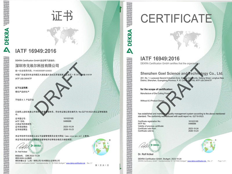戈埃爾科技榮獲IATF16949汽車行業(yè)質(zhì)量體系認(rèn)證證書(shū)